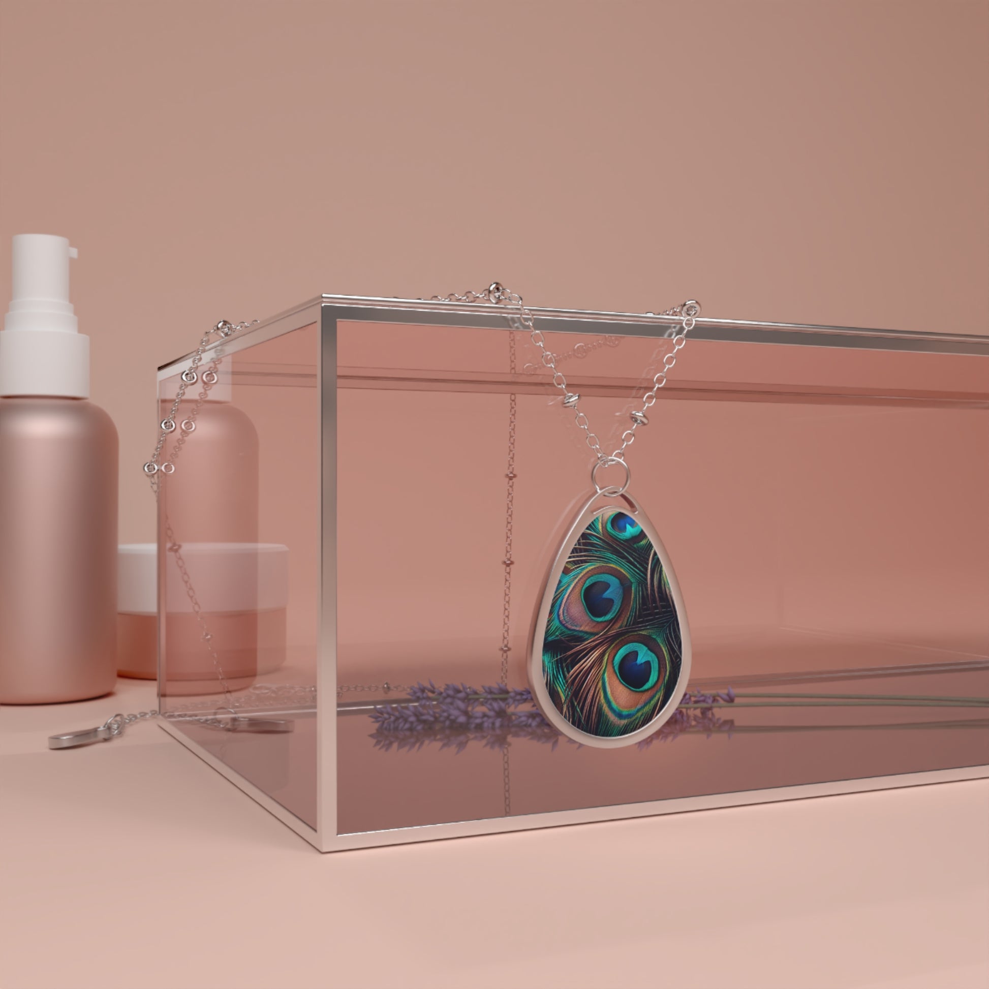 Elegant Peacock Oval Necklace - Boho Chic Jewelry for Nature Lovers