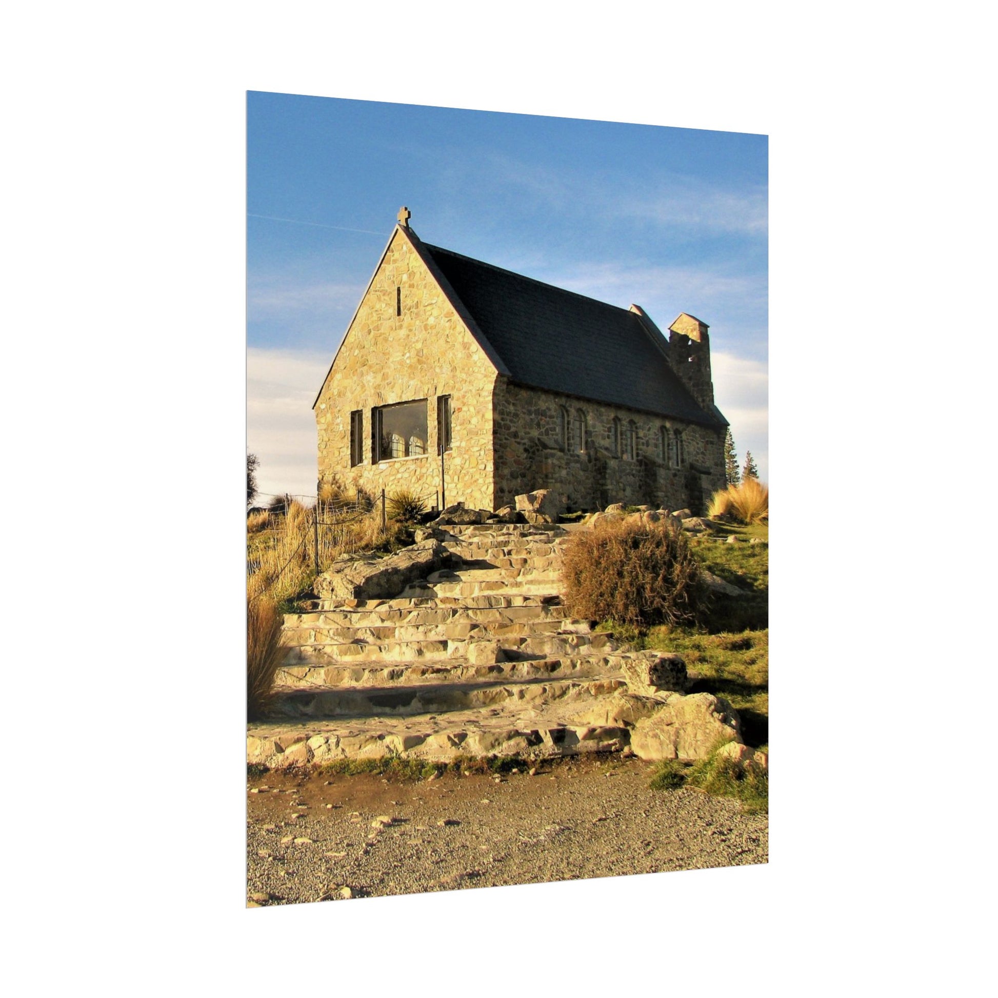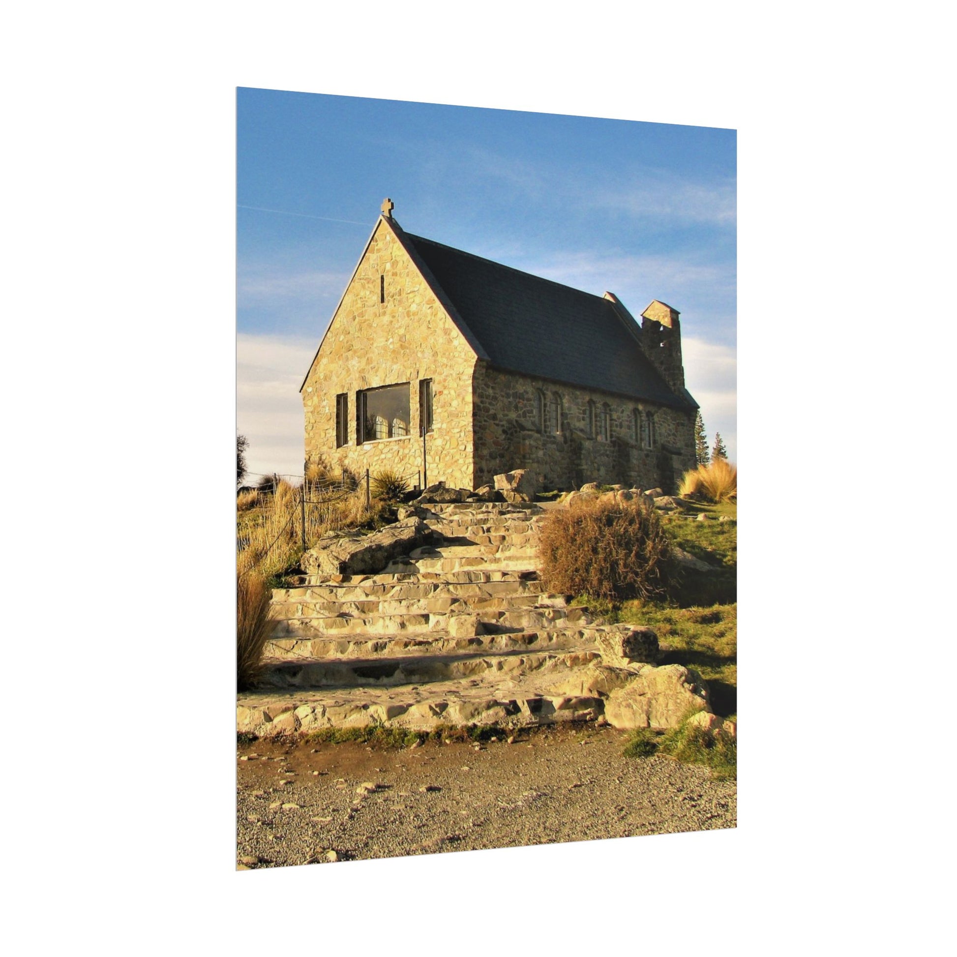 Scenic Nature Rolled Poster - Tranquil Stone Church Wall Art